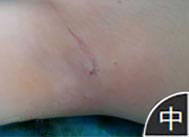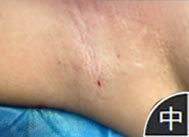 组织修复情况十分理想,无疤痕遗留,无腋毛再生迹象。