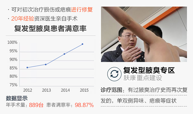 肤康.中国(DR.SKIN),作为全国皮肤病专科连锁品牌。经过多年的持续发展,拥有先进的国际诊疗技术、特邀三甲名医会诊、是海南省腋臭手术失败鉴定机构,同时肩负着为海口及海南全省提供专业腋臭手术修复服务,及少儿腋臭公益援助救助的责任;已经成为海南省规模最大、康复率最高的专业腋臭品牌,是海南重点腋臭诊疗机构。